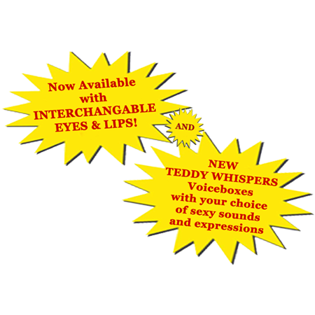 Our classic Deluxe Teddy Babes ™ love dolls (standing approximately 5 foot, 5 inches tall / 1.6510 meters) are available in a number of sexy models, now ALL featuring dynamic rotating legs and anal entry! CLICK THEIR PHOTOS BELOW TO SEE INDIVIDUAL DOLL PAGES.